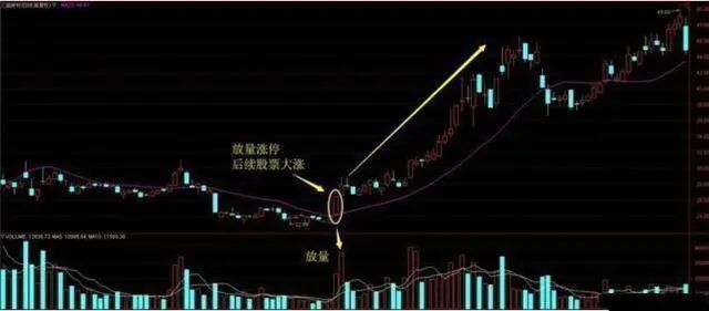 上涨趋势的股票,如果出现放量涨停,很容易吸引更多的跟风盘,股价在涨停后继续上攻的动力就会更充足。