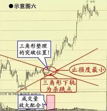 股票上涨后不久就出现了收敛三角形整理的走势,构成了追涨的买入位置(参见下图六)。