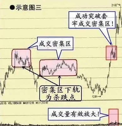 下面这个股票曾经在15—16元之间形成了两次成交密集区,有大量筹码在这一带被套牢。当股价强劲突破了该区域且创出了新高时,显示了主力有志在高位的打算和意图,因而前期高位就有可能成为新一轮行情的起点,所以投资者可以追涨操作(参见下图三)。